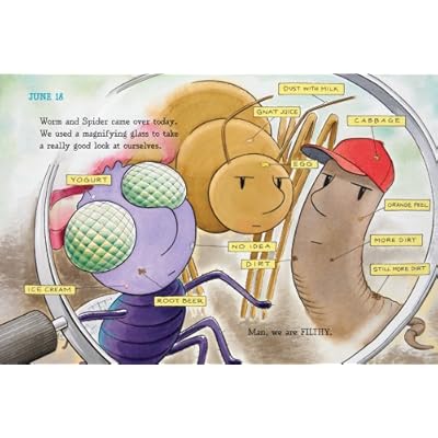 Both books display the date the same way, at the top of the page, and they are both told from first person point of view. This book however, has bigger illustrations that fill the page. There is more labeling in the illustrations since it is told from the fly's point of view. All of the illustrations are "bigger." What I mean is since a fly is very small, all of the illustrations seem huge. There is a coke can on one page and it fills most of the page. If you saw a coke can in the other book, it wouldn't take up so much space.